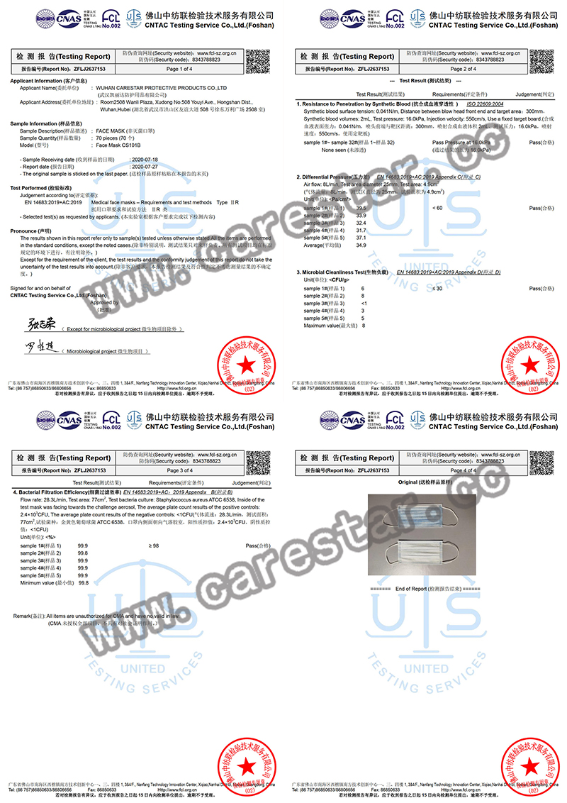 D. We have certificate of CE and Nelson test report of 99.9% BFE for this disposable face mask.